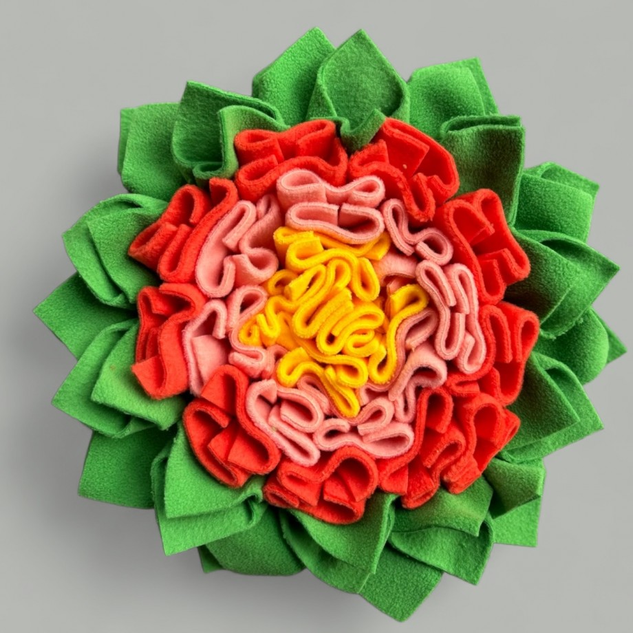 Szyta mata węchowa w kształcie kwiatka umili czas Twojego zwierzaka.