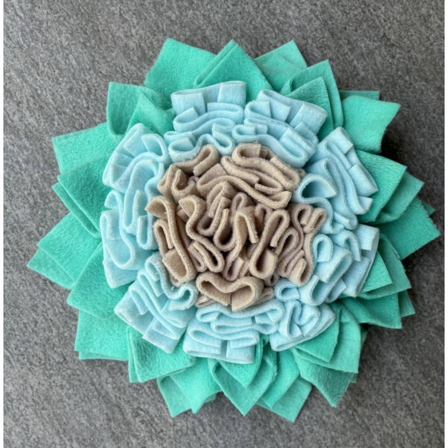 Szyta mata węchowa w kształcie kwiatka umili czas Twojego zwierzaka.