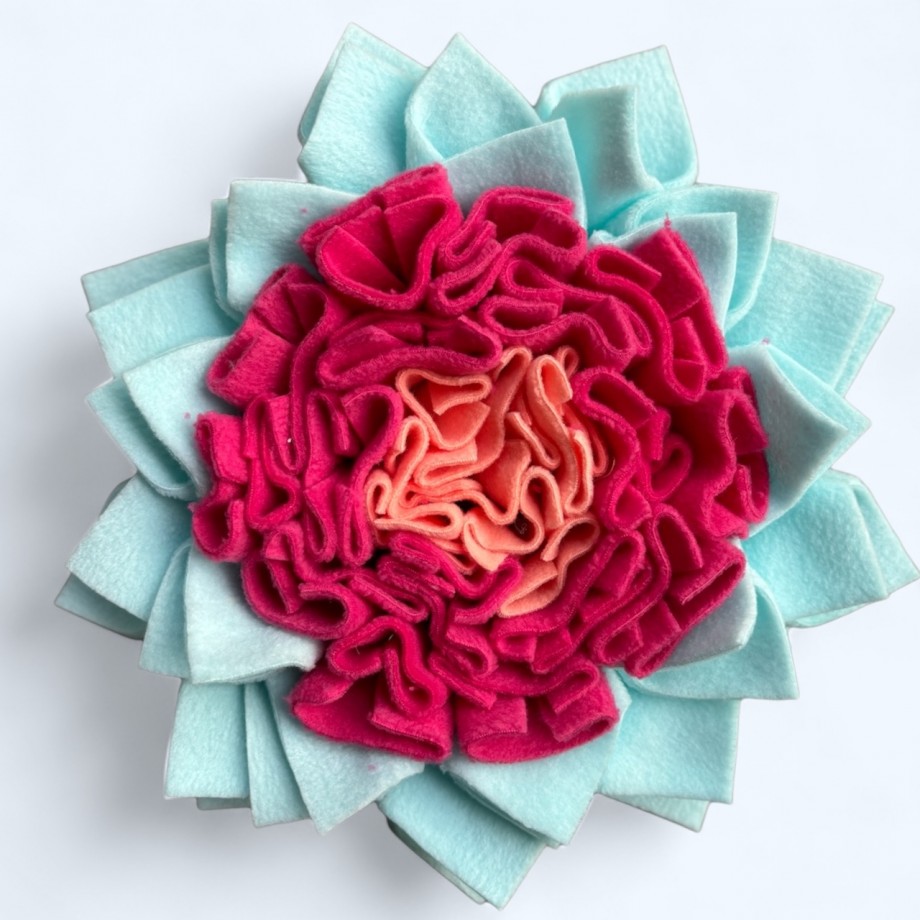 Szyta mata węchowa w kształcie kwiatka umili czas Twojego zwierzaka.
